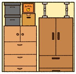 タンスの上に物がたくさん置いていないか確認。寝ている間に落下する危険がないよう、別の場所に移動させます。大きなタンスなどの家具は、それ自体が転倒すると危険です。危険のない位置に移動させたり、可能であれば処分したりするのがおすすめです。